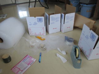 ゆうパック着払いで発送準備。作品を間違わずに送るのが結構大変。