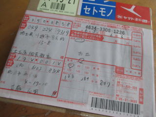 間違えて発送した作品が戻ってきました。