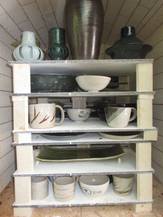 ずらりと土工房陶芸教室会員の立派な入選作品が・・・・至福の時。ありがたいことです。
