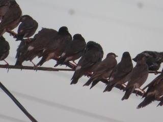 夕方何か騒がしいと思ったら・・・電線に鳥がびっしりと